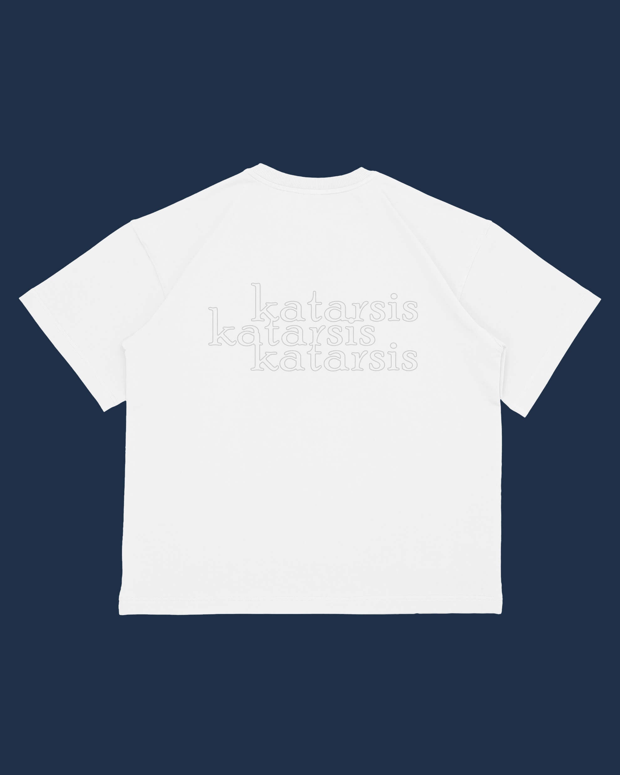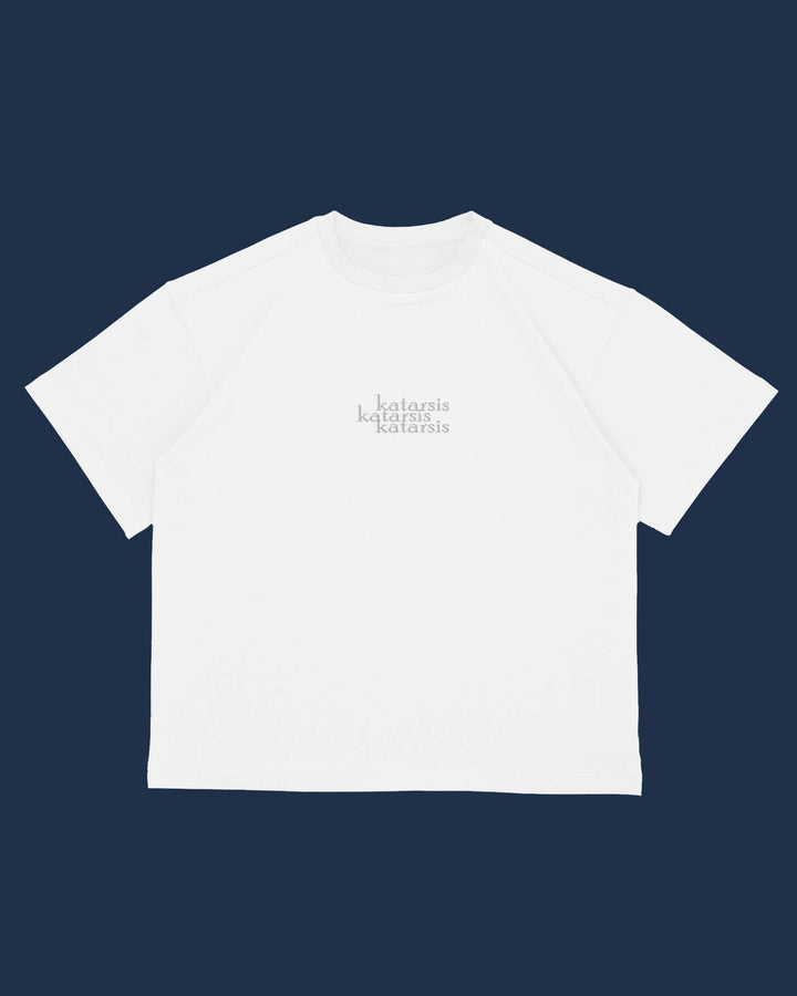 Stilingi ir itin patogūs padidinti balti marškinėliai, pagaminti iš 100 % aukščiausios kokybės medvilnės. „Katarsis“ logotipas išsiuvinėtas priekyje ir ant nugaros.